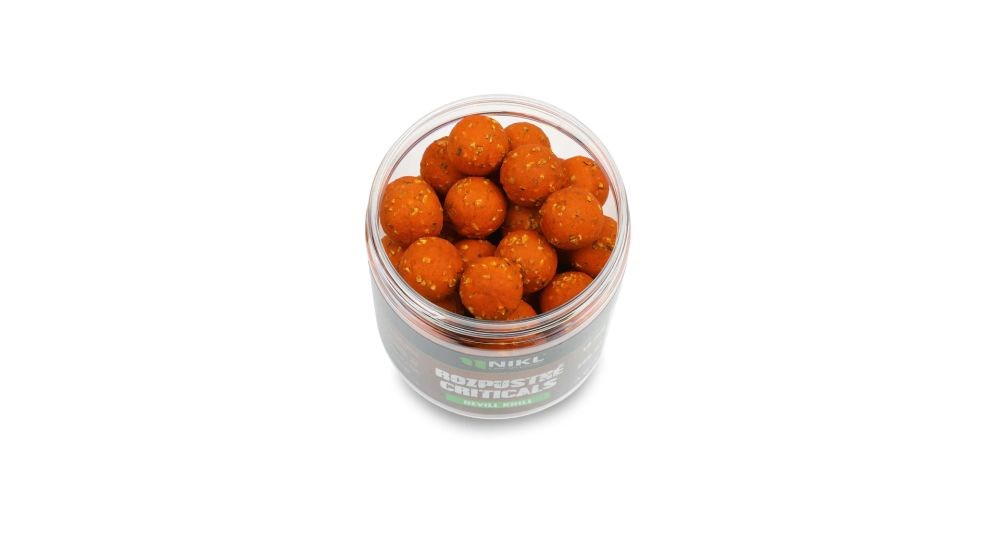 Nikl Rozpustné Criticals boilie Devill Krill 250 ml je skvělou volbou pro situace, kdy potřebujete dosáhnout záběrů v co nejkratším čase. Tato speciální nástraha určená pouze pod háček se po několika minutách ve vodě začne pomalu rozpouštět a uvolňovat esence, atraktory a moučky, což je pro kapry mimořádně přitažlivé. Právě díky této rychlé práci ryby při krmení často upřednostňují nástrahu před ostatním krmením, a vy tak získáte výraznou výhodu hned v prvních fázích lovu.