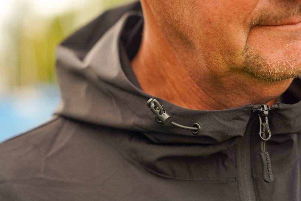Bunda je vyrobena z odolného prémiového polyesteru, s nádechem spandexu vytváří pak flexibilní, dynamickou a lehkou dlouhou bundu s kapucí. Bunda je přesně pro ty, kteří požadují funkčnost a zároveň chtějí vypadat stylově.