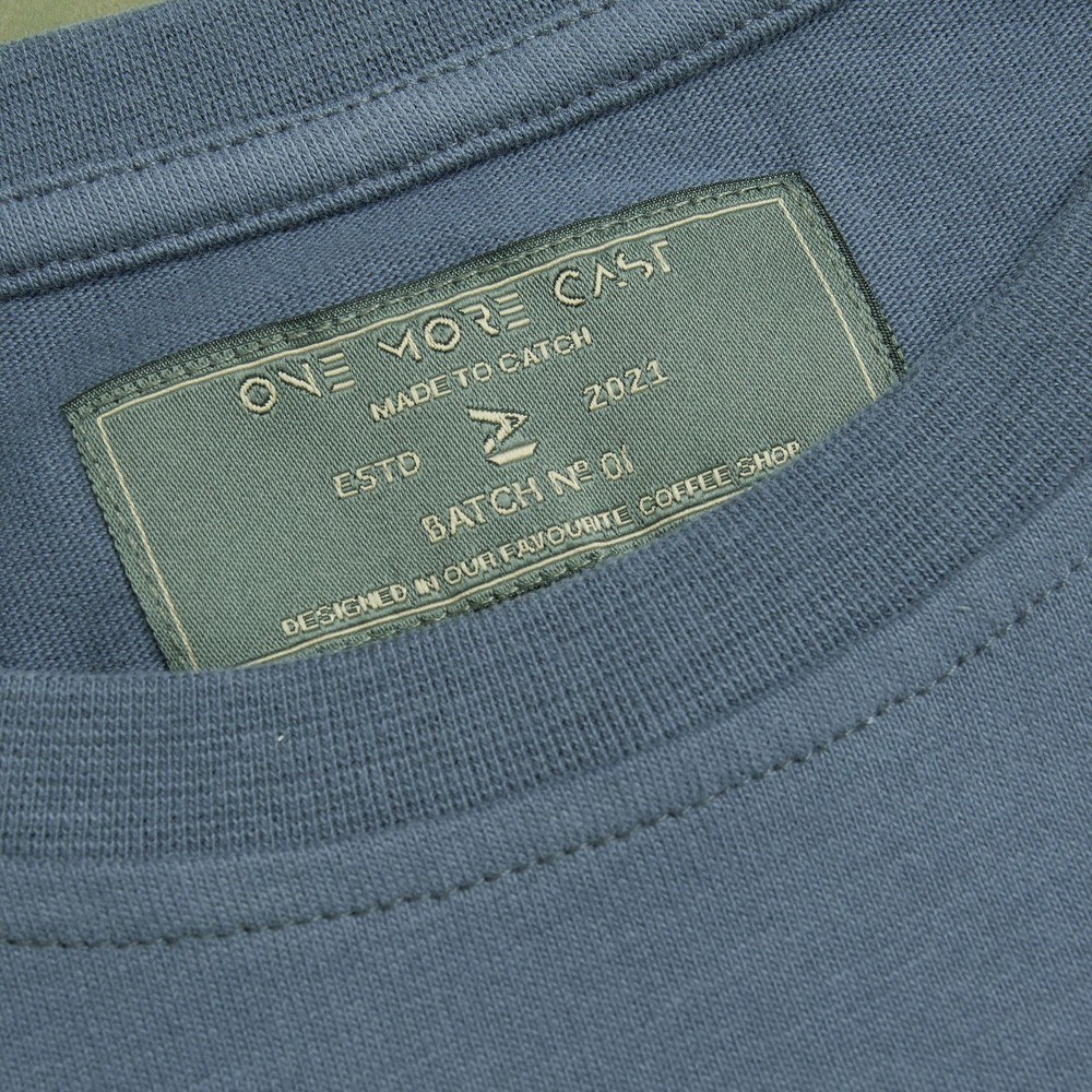 Tkaný label ve vintage stylu s OMC brandem.