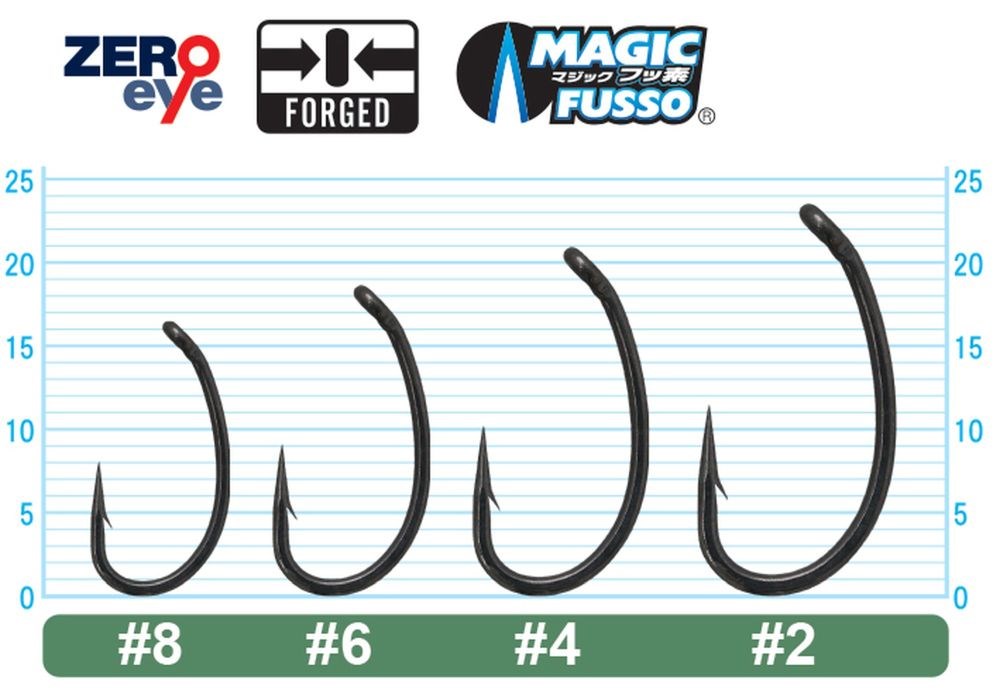 Zero Eye uzavřené očko s pryskyřičnou výztuží zabraňuje, aby se vlasec dostal mezi očko a tělo háčku, čímž chrání vlasec před poškozením a zajišťuje maximální bezpečnost i při zdolávání velkých ryb.