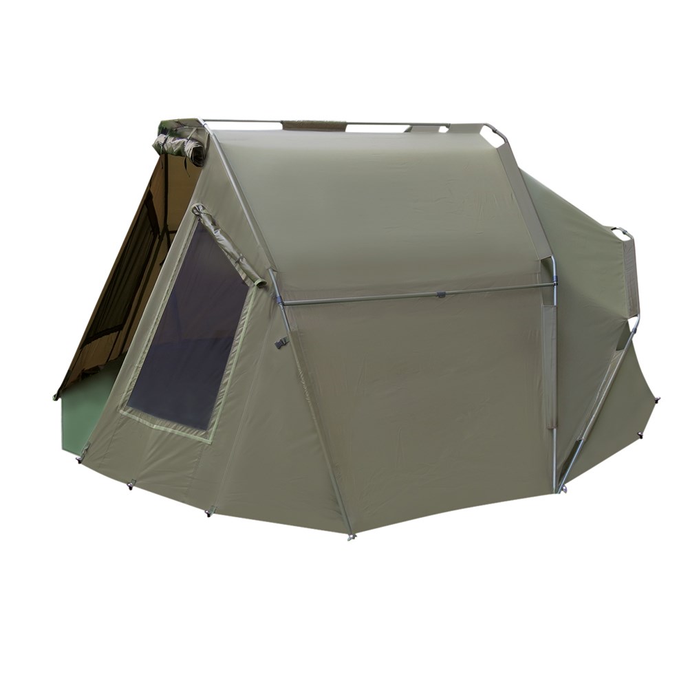 Ohromná konstrukce bivaku působí „všelijak“, ovšem nevěřili byste, jakou má tento bivak stabilitu. Díky geniální konstrukci toto rybářské obydlí nezboří ani nejsilnější vítr. Konstrukce bivaku je z pevného hliníku, který kromě obrovské odolnosti nabízí i poměrně nízkou váhu. I když konstrukce bivaku působí poněkud těžkopádně, postavíte ho během několika minut.