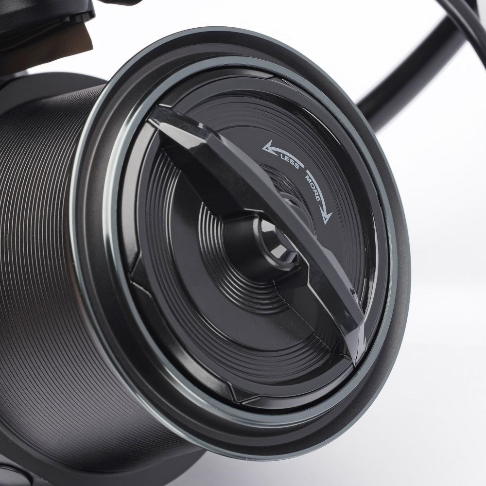 Převod 5,2:1 = 124 cm na otáčku, tři kulaté klipy a oscilační systém X-Slow Leveline zajišťují perfektní ukládání vlasce. Bez náhradní cívky – nižší cena – a extrémně tuhý korpus z materiálu XRC. Pro pohodlné spombování má jednodílná hliníková klička místo T-rukojeti „egg” knob pro lepší úchop při rychlém navíjení.
