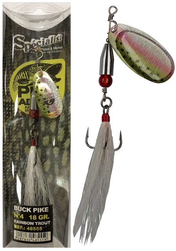 Díky její váze se s ní výborně nahazuje. Střapec chmýří na trojháčku přidává rotačce extra dráždivý pohyb. Tělo rotačky je vyrobeno z pevného 1,2 mm silného nerezového drátu a osazené pevným a super ostrým trojháčkem pro maximální spolehlivost.