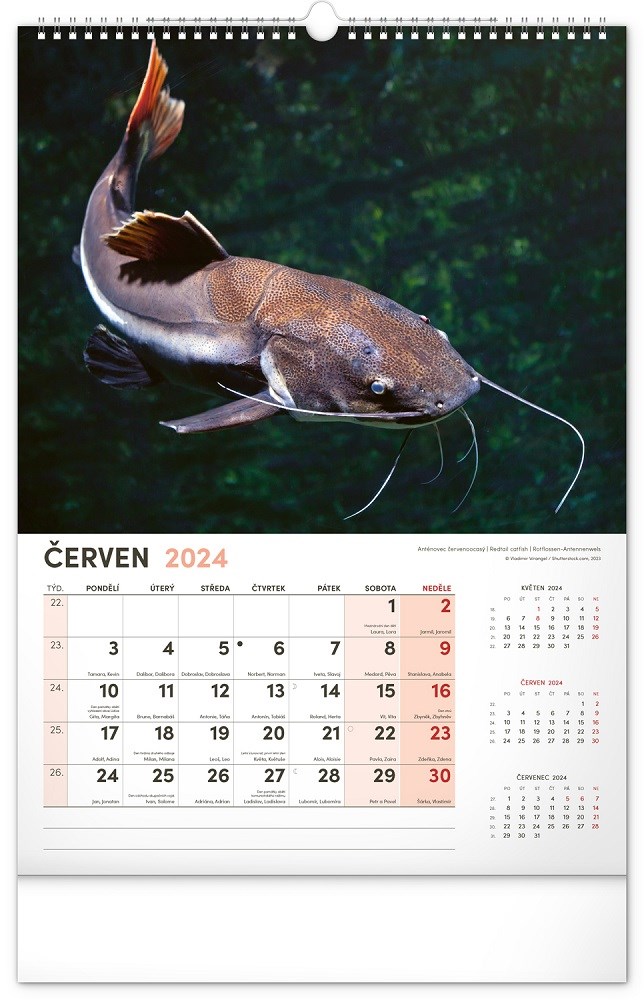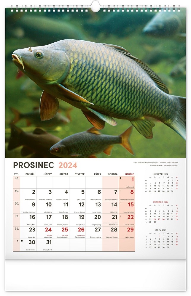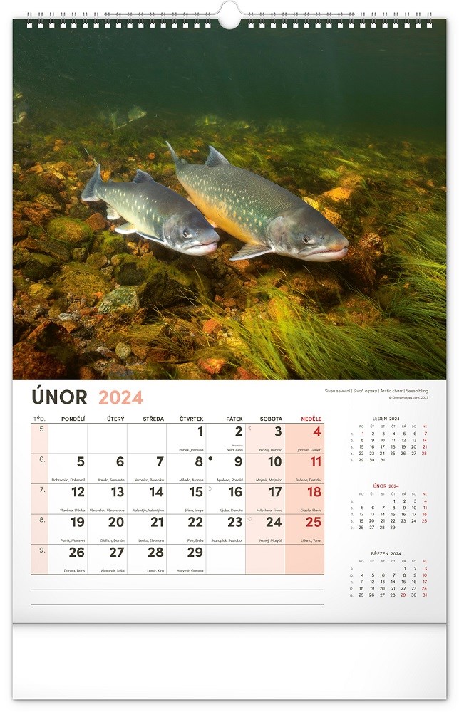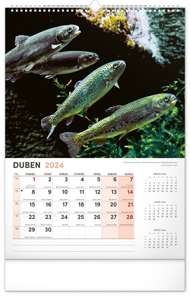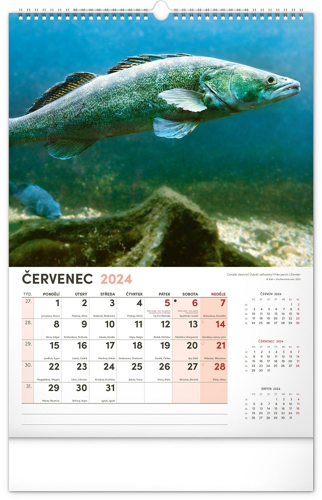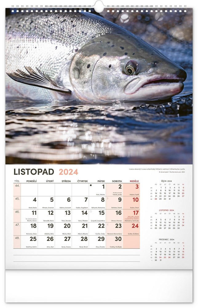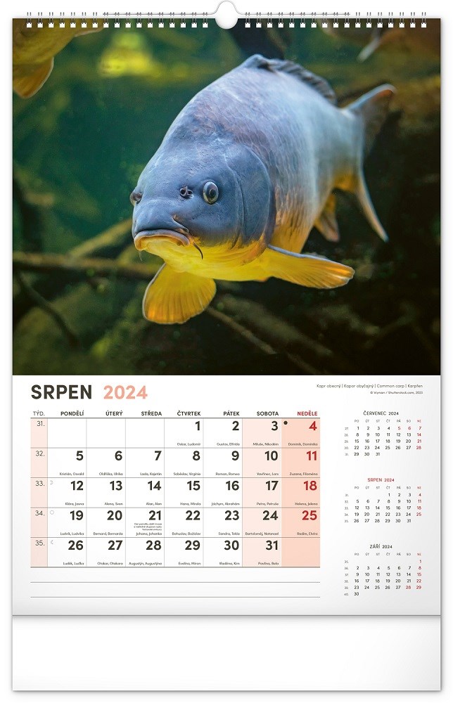 Nástěnný kalendář s fotografiemi z vodního světa zachycující ty nejskvostnější úlovky. Rozšířené kalendárium obsahuje česká jména, svátky a památné dny, tříměsíční přehled na každé straně a prostor pro poznámky. Nadchne všechny vášnivé rybáře a milovníky vodních toků.