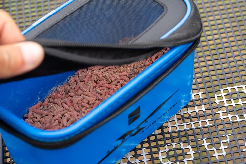 Síťované víko, které je ideální pro uchování a přepravu živých nástrah, umožňuje dobré proudění vzduchu a udržuje nástrahy, jako jsou červi v nejlepší kondici.