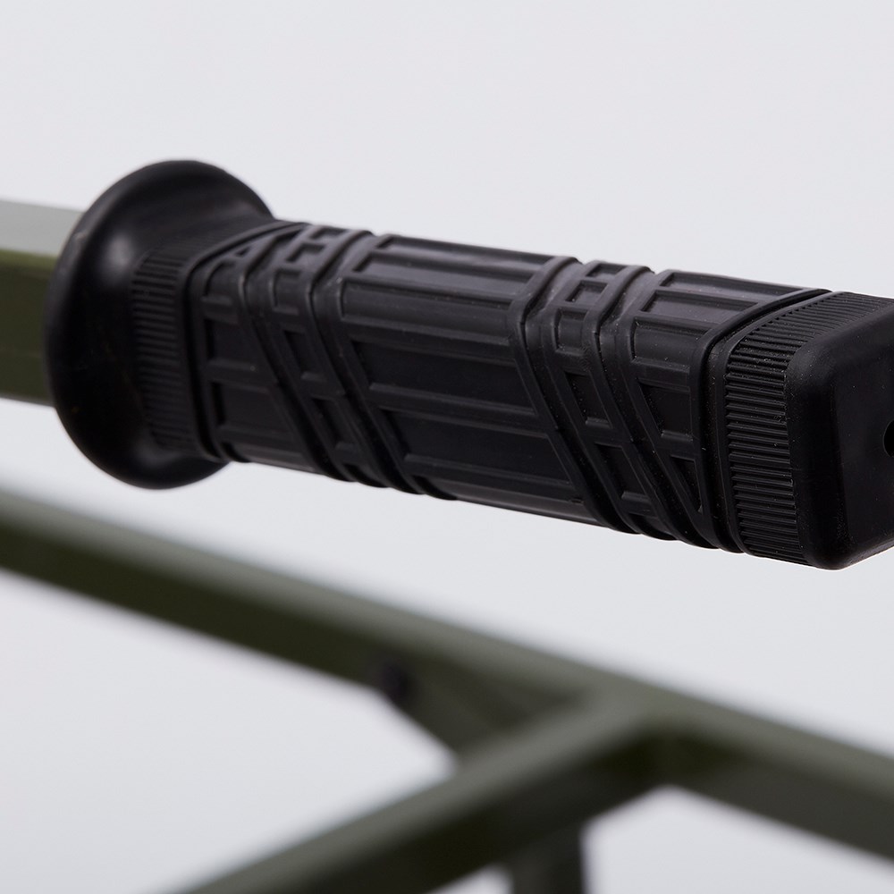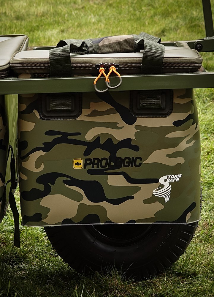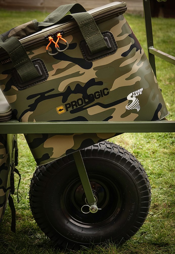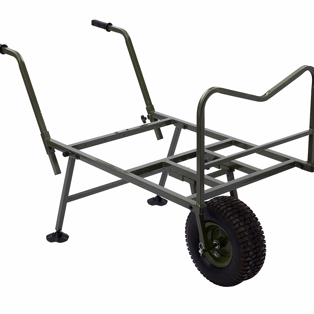 Tento robustní vozík lze použít ve spojení s křeslem a jeho nohy slouží jako postranice. To umožňuje mnohem menší a lehčí přepravní velikost, kterou lze rychleji a snadněji nastavit. Přední kolo bylo speciálně umístěno tak, aby poskytovalo optimální rovnováhu a zajistilo rovnoměrné rozložení vybavení ve vozíku. Plochá skládací přední kolejnice bezpečně drží zavazadla během přepravy. Výšku rukojeti lze individuálně nastavit, aby bylo možné s vozíkem manévrovat s nataženýma rukama, což vám dává větší kontrolu a snižuje únavu! Díky univerzální pneumatice Big Boy, která snadno zdolá i ten nejtěžší terén, i plně naložený vozík je bezpečný a snadno dosažitelný na lovné místo. Jejich velké rozměry umožňují lepší rozložení hmotnosti pro bezpečné manévrování i na měkkém podkladu. Zesílená dvojitá konstrukce zajišťuje vynikající přilnavost a chrání před nadměrným odporem vzduchu.