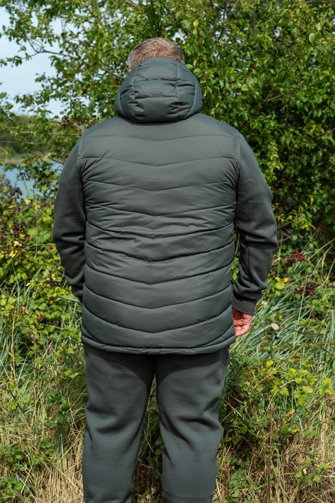 Hlavní část těla je vycpaná syntetickým prachovým peřím, které zachycuje teplý vzduch mezi vlákny a zajišťuje, že vaše jádro zůstane izolované. Nastavitelná kapuce ve stylu mušle s vysokým výstřihem nabízí možnost větší ochrany před živly. Přední zip po celé délce umožňuje v případě potřeby tento kabát rychle obléci nebo svléknout a je vybaven klopou proti bouři, která pomáhá chránit před zimou.