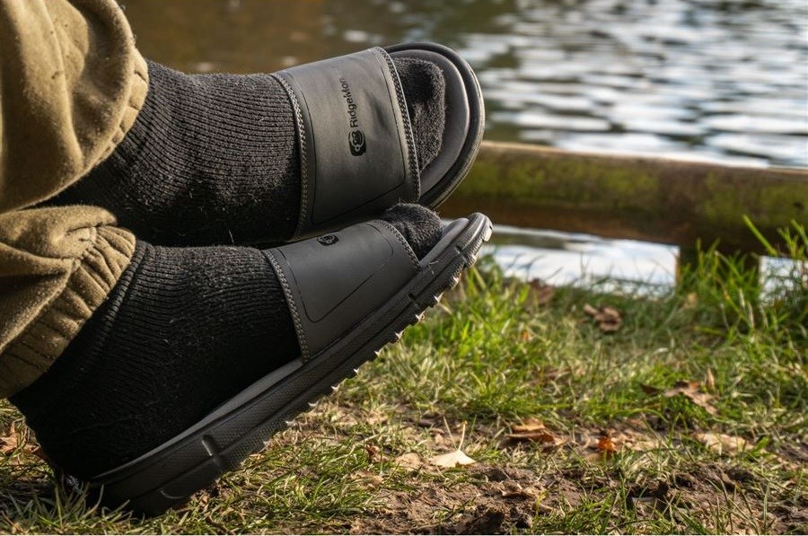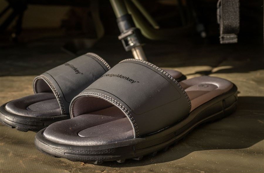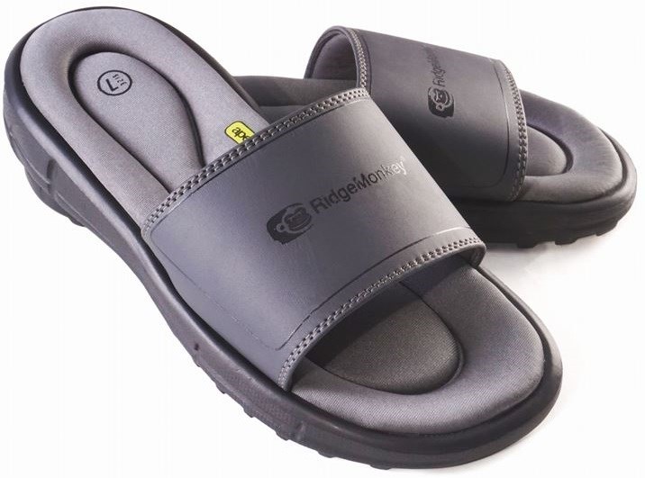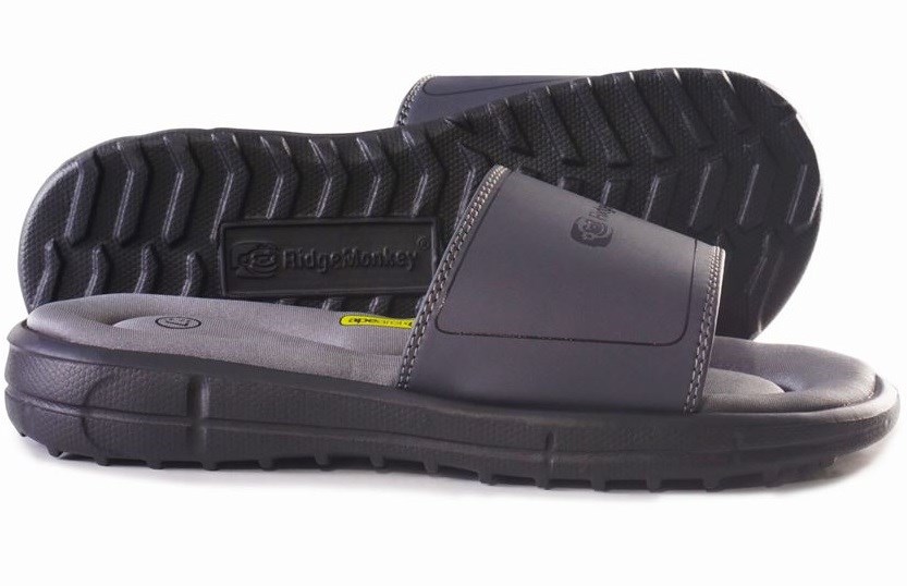 Tyto pro nohy stvořené polštáře jsou rychleschnoucí, stélka je vyrobena z paměťové pěny a podešev z lisovaného EVA materiálu s protiskluzovou úpravou. Na noze je spolehlivě drží pásek z PU a polyesteru s decentním logem RidgeMonkey.