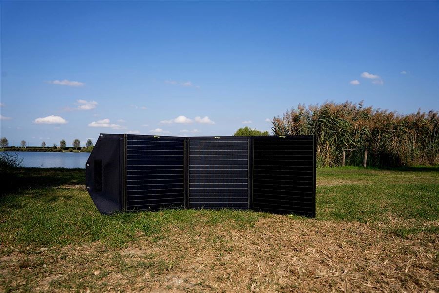 Nabízí jednoduchý a skladný design s odolným pogumovaným obalem. Jeho použití je snadné, stejně jako jeho přeprava – ideální pro turistiku, kempování, rybaření či jinou outdoorovou aktivitu. Součástí panelu je kapsička na suchý zip, kam si můžete uložit nabíjecí kabel, a pevná zadní klopa, díky níž můžete panel postavit a vystavit lépe slunečnímu záření. Pro pohodlné přenášení slouží ergonomicky tvarovaná rukojeť.