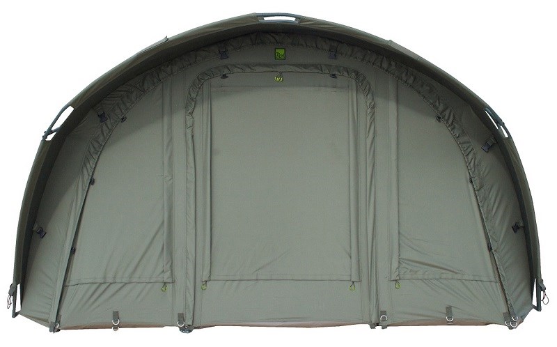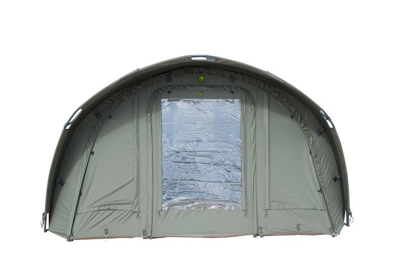 Přední strana stanu s velkou sítí proti hmyzu a krytem zipu