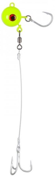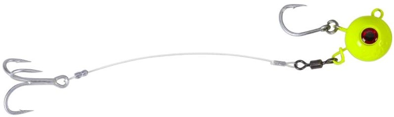 Reflexně lakovaná hlava s jednohákem pro nastražení umělé nástrahy nebo ryby. Jednohák není pevně fixovaný s hlavou, proto jej lze snadno vyměnit za menší či větší variantu dle velikosti nástrahy. Dvaceticentimetrový návazec z fluorocarbonu o průměru 1,2 mm zakončený trojhákem velikosti 4/0 zaručí perfektní zásek. Oba háky mají nerezovou povrchovou úpravu. Snadná a rychlá výměna návazce díky rychloupínacímu očku na hlavě. Nosnost montáže až 96 kg.