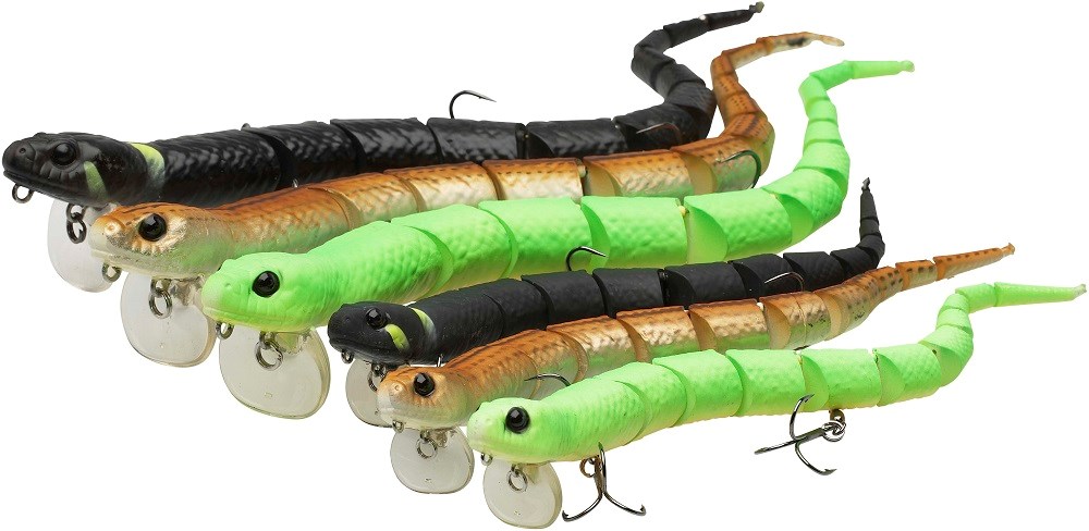 Nástraha plave s akcí širokého S buď na hladině, nebo přímo pod ní, v závislosti na tom, na který kroužek nástrahu připnete.