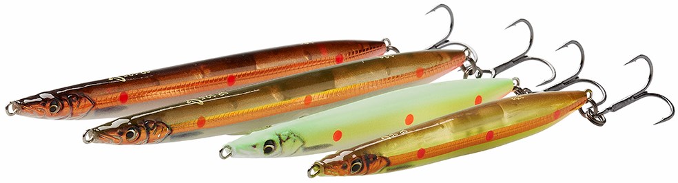 Na dorazu se návnada třepotá a kutálí dozadu – vyvolává tvrdé údery. Nástraha má vestavěnou chrastící komoru, která při škubnutí vydává hlasité cvakání. Extrémně dlouhý nához pro úžasné pokrytí. Dodáváno s jednoduchým i trojháčkem, s možností přidat trojháček i na bříško.