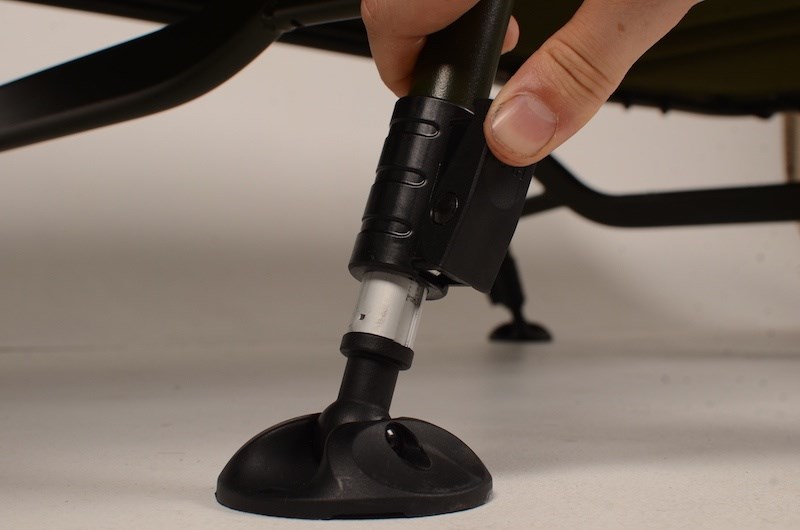 Díky nim je křeslo pohodlné a lehké. Hliníková konstrukce zahrnuje Spring-Loc mechanismus na nastavení nohou a 3 polohy zaklonění křesla. S křeslem je dodávána i odnímatelná taška na doplňky, která lze použít na všechny křesílka a lehátka od firmy Solar. Sedačka je od země 48cm vysoko bez vysunutí nohou.