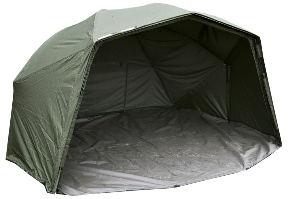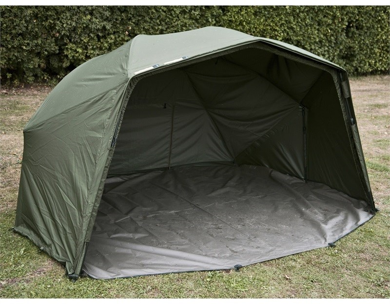 Všimneme si i ohromného vnitřního prostoru, vezmeme-li v potaz jeho půdorys. Přístřešek je dodáván s druhou vnitřní stěnou, která eliminuje kondenzaci, a heavy-duty podlážkou na zip, jenž zabrání pronikání různého hmyzu. V brolly si všimnete neuvěřitelného prostoru nad hlavou a heavy-duty čtvercového moskytiérovýého okna na zadní části, které umožní bezproblémové proudění vzduchu skrz bivak v horkém počasí.