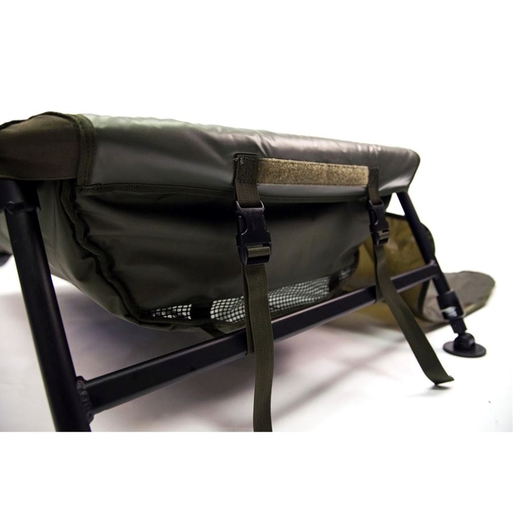 Další výhody jsou postranní odpouštění vody díky síťovině a přehoz přes rybu, který se zajistí pomocí suchého zipu. Oceníte i polstrovanou část na kolena a tlustší polstrování kolem rámu. Ideální je použití společně s SK-TEK vážící taškou, čímž docílíte rychlé a bezpečné manipulace s úlovkem.