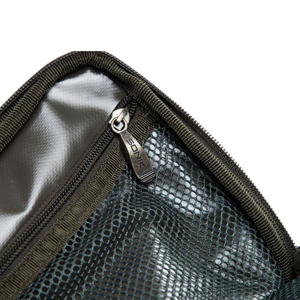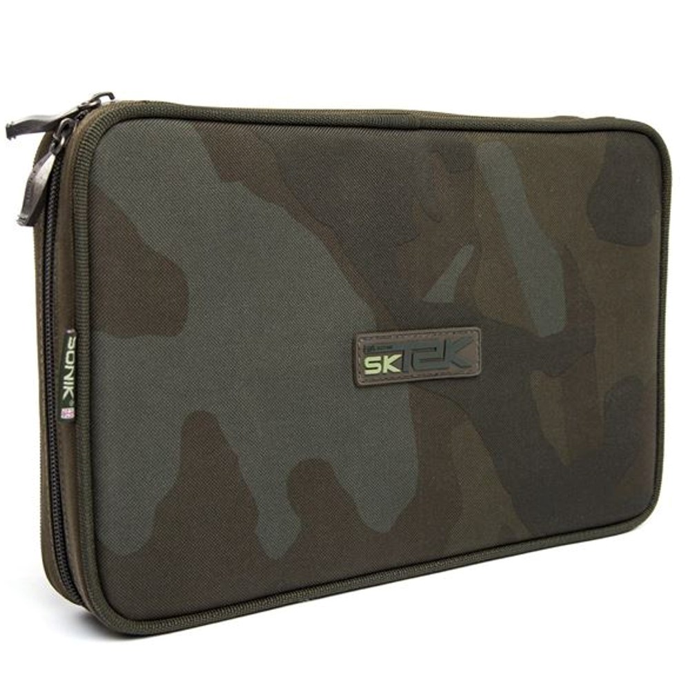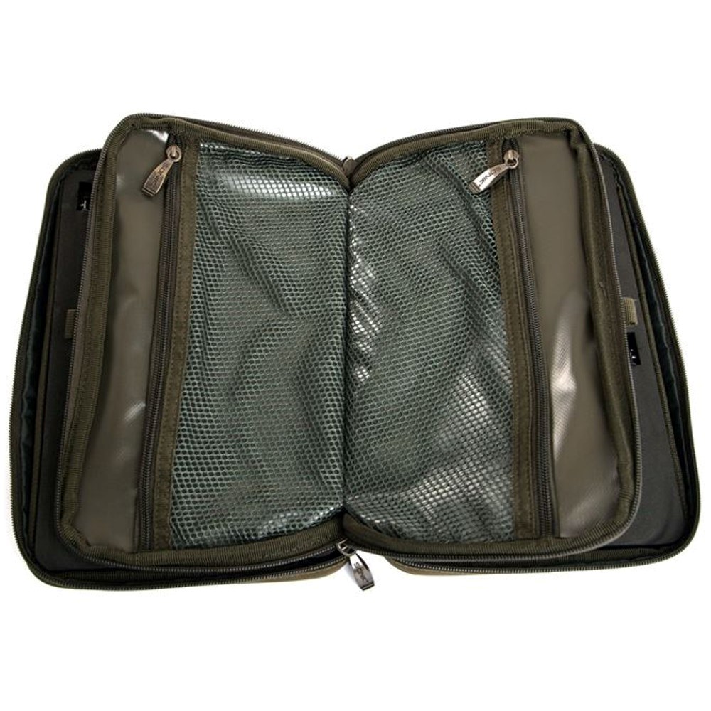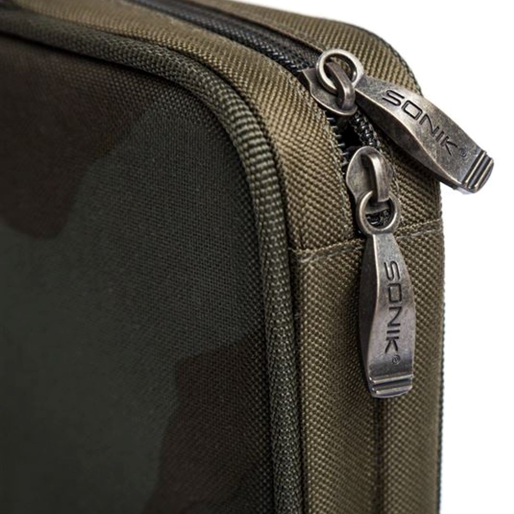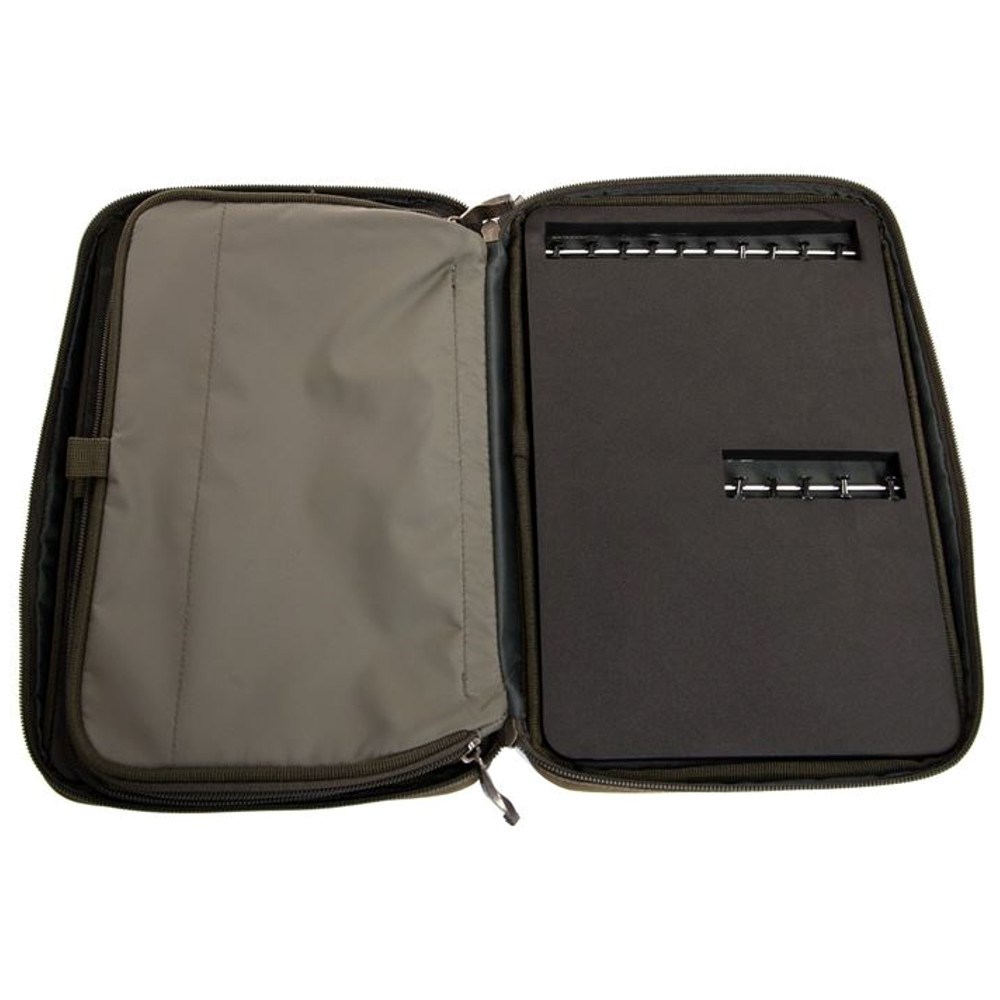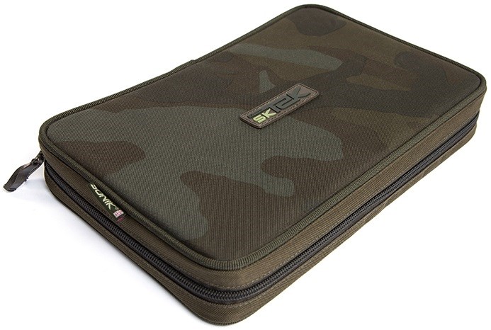 Na tomto obalu si rozhodně všimneme vnějšího SK-TEK camo materiálu s HD 600D PVC podlepením a ztuženými stěnami, které chrání návazce. Vnitřek pouzdra je rozdělen kapsami ze síťoviny, které oddělí monofil a pletenky. Dvojité zipy zajišťují jednoduchý přístup. Pouzdro je dodáváno se špendlíky, kterými zajistíte své návazce a budou tak vždy připraveny.