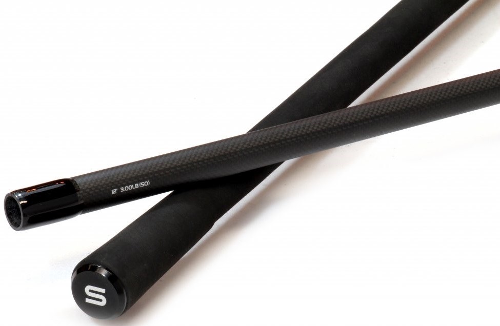 Černé anodisované kroužky u rukojeti. Do koncovky prutu je laserem vyryté logo „S“