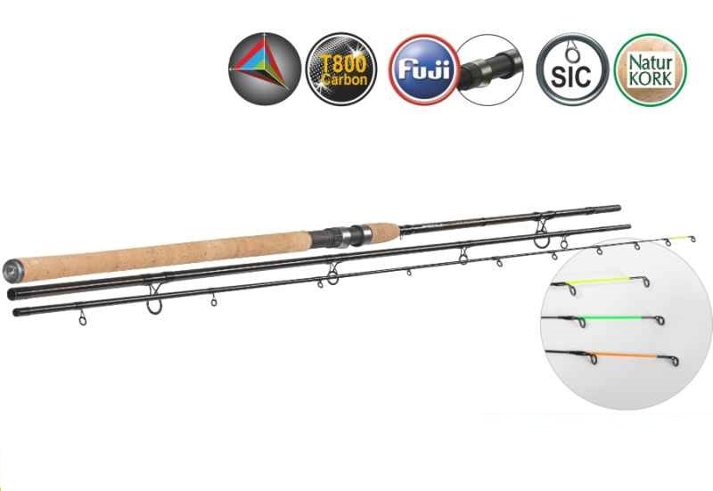 Feeder pruty SPORTEX Xclusive Medium Heavy se perfektně hodí pro lov velkých bojovníků v proudu jako jsou parmy a kapři. Také je můžeme použít při lovu úhořů. Blank je zhotoven z T800 uhlíkových vláken pomocí nejmodernější nano technologie, což dodává prutem rychlost a sílu. S prutem SPORTEX Xclusive se vám bude snadno nahazovat přímo na cíl. Ručka je osazena jemným přírodním korkem pro maximální komfort. Samozřejmostí u prutů SPORTEX je pevné sedlo navijáku a nejkvalitnější SIC očka. Ke každému prutu jsou dodávány tři uhlíkové špičky 2oz, 3oz a 4oz.
