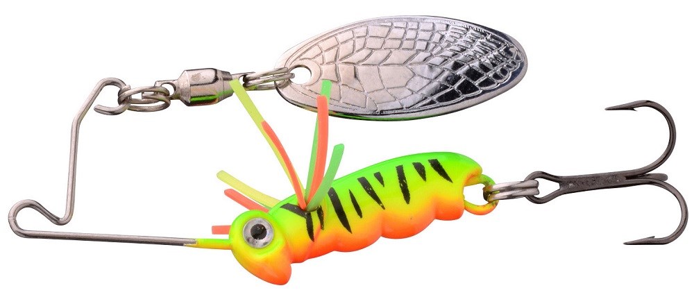 Unikátní SPRO design má profil těla hmyzu, spojený s atraktivitou malé rybičky, kterou vytváří plandající kovový lístek. Gumové nožičky dávají extra realistický vzhled a vydávají malé vybrace podobné třepetajícímu se hmyzu. Speciální list rotačky připojenýk obratlíku s nerez ložiskem perfektně pracuje a dává nástraze reflexní zrychlení a dráždivost. Skvělá malá nástraha na okouny, pstruhy, boleny, tlouště a další sladkovodní druhy, které preferují malou svačinku.