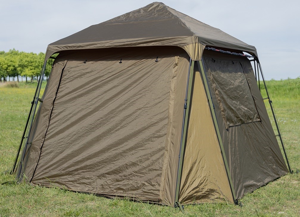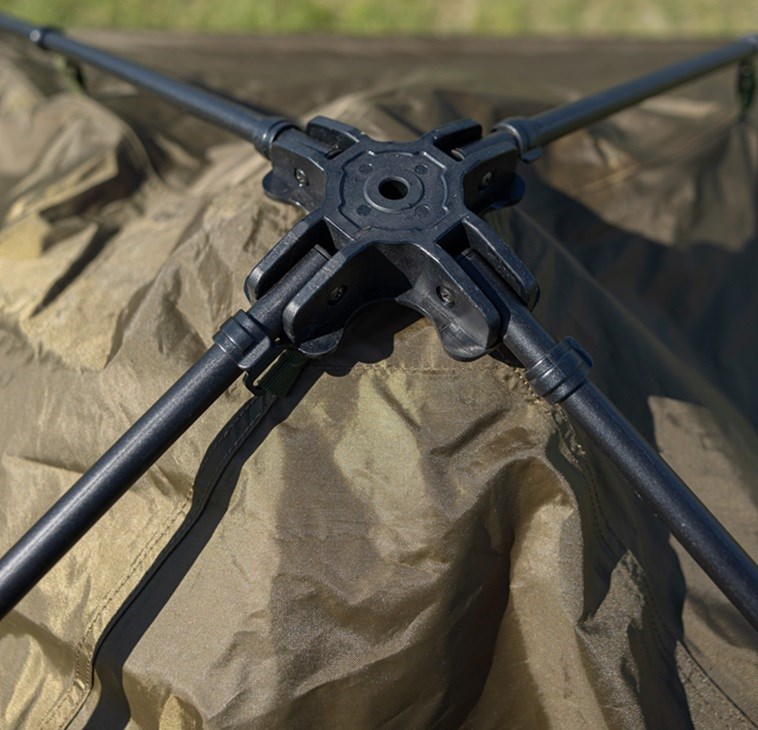 Je vyrobený z nepromokavé silnostěnné tkaniny s integrovaným přehozem proti dešti a kondenzaci pro ještě lepší ochranu a komfort. Vodní sloupec 10000 mm a X-Strong zipy zajišťují maximální odolnost a životnost. Konstrukce je tvořena teleskopickými hliníkovými 19mm tyčemi, které umožňují snadné a rychlé sestavení i jednou osobou. Navíc snižují objem při transportu. Dvojitě zesílené patky se stabilizačními kotvícími šňůrami poskytují výbornou stabilitu i za zhoršeného počasí. Všechny postranní panely lze zcela otevřít a přeměnit tak bivak na vzdušný přístřešek. S bivakem jsou dodávány i dvě tyče, které můžete využít k vytvoření stříšky z předního nebo zadního panelu. Přední i zadní vchod a oba boční panely panely obsahují každý velké moskytiérové okno pro dokonalou ventilaci a dobrý výhled ven. Uvnitř je bivak nově vybaven čtyřmi odnímatelnými kapsami pro přehledné uložení vybavení, závěsem na světlo a malou kapsou na drobnosti nebo příposlech. Součástí bivaku je i silnostěnná odolná odnímatelná podlážka s klipovým uchycením, sada kolíků a přepravní taška.