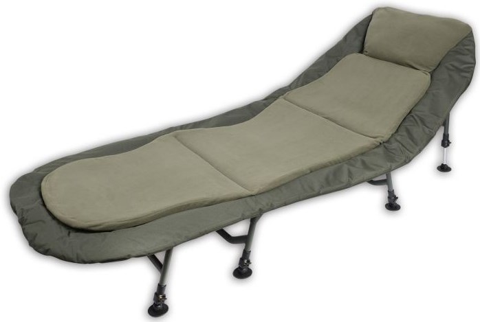 Velmi pohodlné, osminohé lehátko, které je plně polohovatelné a má lehkou a díky zvýšenému počtu podpěrných noh opravdu nadprůměrně stabilní konstrukci. Okraje prošívané matrace, která je celá v khaki zelené barvě, jsou vyrobeny z nylonu 600D. Vnitřní prostor je opatřen odnimatelnou matrací z vysoce hřejivého, na dotek velmi příjemného thermo materiálu - polar fleecu. Velmi praktické pro letní období! Podhlavníková část je prošívaná a tvoří ji pohodlný, polstrovaný polštář. Osm teleskopických noh je opatřeno širokými podložkami proti boření se do písku. Mají pevnou aretaci a nastavitelnost, umožňují zvednutí lehátka i vysoko nad zem, nebo umístění i do velmi nerovného a měkkého terénu.