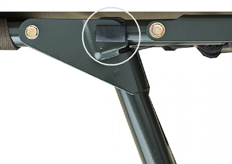 Lehátko má klouby sklonu zad, packy nohou s protiskluzovým dezénem, aretaci nohou proti jejich sklopení a jednoduchý stavitelný zámek.