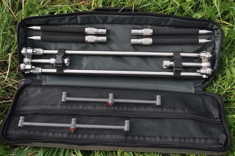 Na jeho výrobu byla použita nerezová ocel té nejvyšší kvality, tloušťky 13,9 mm. Dokonalé je i zpracování veškerých detailů, kterým je kladen velký důraz. Za povšimnutí stojí decentní loga firmy na vidličkách, hrazdách i na hlavním těle stojanu. Ve standartním balení naleznete jeden pár hrazd na 3 pruty, kde je vždy jedna z hrazd kratší (zadní) a druhá o něco málo delší (přední). Pruty tak vytváří lehké véčko a nejsou posazeny rovnoměrně vedle sebe. Hrazdy se upevňují unikátně jednoduchým šroubovacím systémem na vzpěry vycházející z bytelného těla. To je vyrobeno ze dvou masivních nerezových tyčí a je roztahovací do maximálních běžně používaných délek.