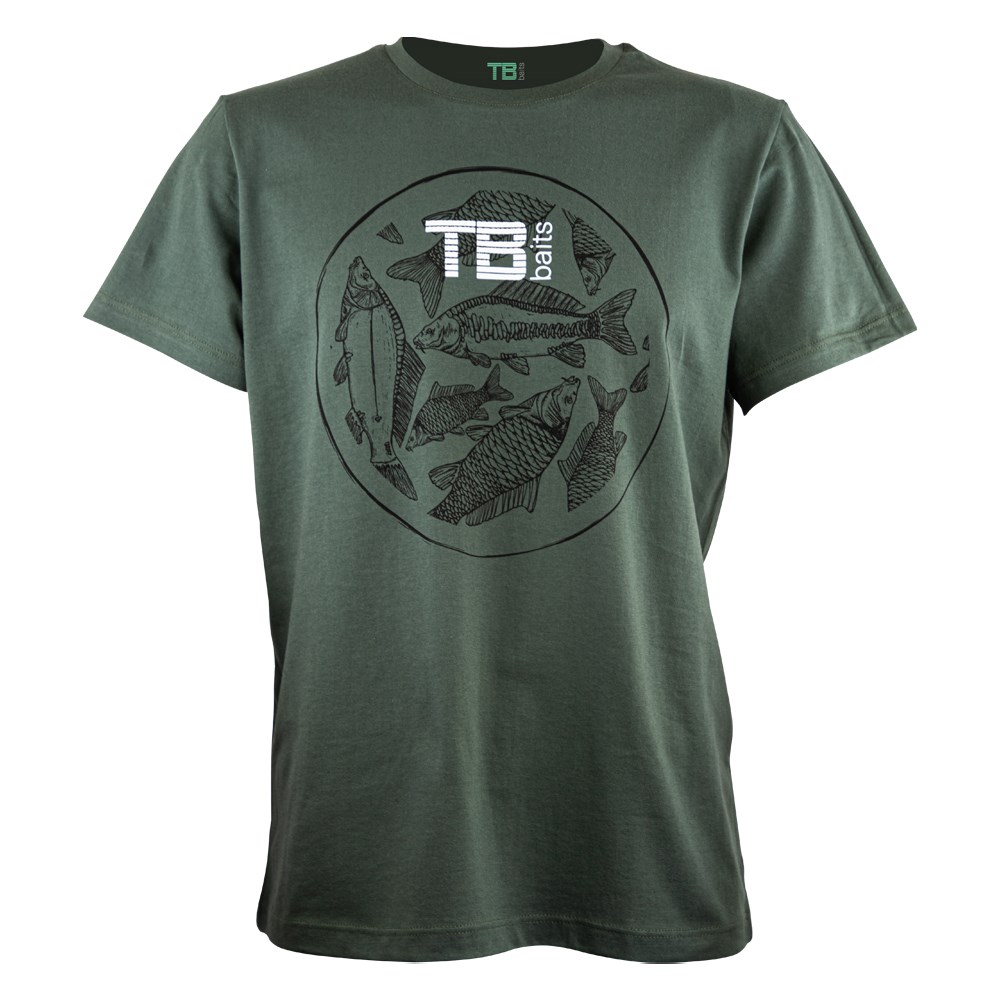 Tričko TB Baits s názvem Vintage je postaveno na designu ručně kreslených kaprů. Najdete zde šupináče, lysce i řádkáče. Kresba kaprů je doplněna decentním logem TB Baits. Tričko je dostupné v zelené barvě s černým potiskem a v černé barvě se zeleným potiskem. Logo je na obou variantách v bílé barvě.