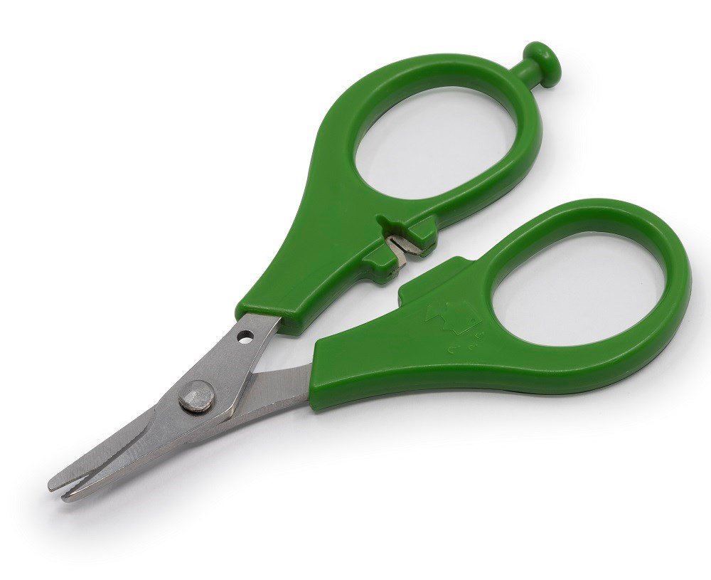 Nůžky jsou vroubkované a v rukojeti mají integrovaný nástroj na stahování šňůrek a nástavec určený pro dotahování uzlů.
