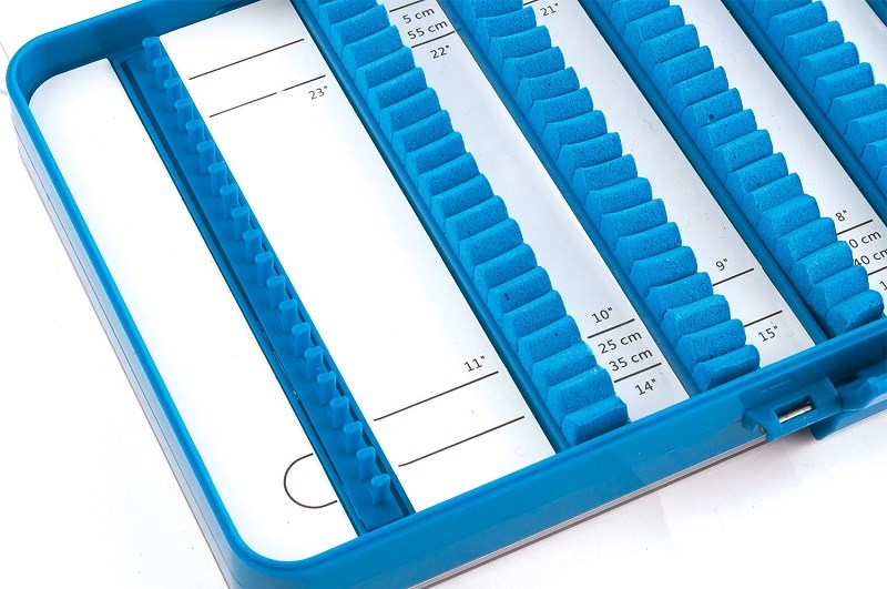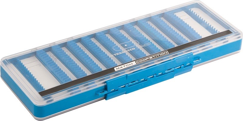 Vyrobena z velmi odolného plastu s čirým víkem pro maximální přehled. Jednotlivé sekvence jsou tvořeny EVA materiálem, výborná věc, kde jednotlivé návazce jsou odděleny od sebe, nehrozí tak jejich opotřebení při přechovávání. Na obou stranách je 20 + 20 držáku, které nabízí možnost uskladnění různých řad a typů pro okamžité použití. Jednoznačně ideální pro závodníky, feeder. Lze uskladnit v délkách od 5 cm až do délky 31 cm a dokonce i delší.