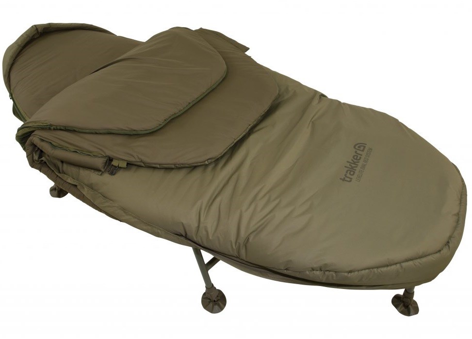 Lehátko má stejný revoluční oválný tvar jako předešlá verze, díky čemuž poskytuje lehátko dostatek prostoru v bivaku. Dále je lehátko samozřejmě kompletně ploché, což zaručuje ničím nerušený spánek. Lehátko je na spodní straně vybaveno šesti nastavitelnými nohami s patkami proti zaboření do země. Změnou ale oproti starší verzi je, že nohy jsou rozloženy ve všech krajních bodech lehátka, čímž bylo docíleno větší stability a optimálnímu rozložení váhy po celém obvodu lehátka. Aby byl celý set co nejvíce pohodlný, bylo lehátko doplněno o plně odnímatelný spacák, který má na svém povrchu hydrofobní vrstvu, díky čemuž se do spacáku nedostane voda. Dále se uvnitř spacáku nachází odnímatelná vložka, a tak si můžete spacák změnit z pěti sezónního, který se perfektně hodí do chladnějších měsíců, na tří sezónní, který využijete v teplejších měsících. Celý vnitřek spacáku je vyroben v příjemného polyesteru, což dodává maximální komfort. Na vrchní straně se navíc nachází úchyt na polštář. Po celém obvodu spacáku byly použity tzv. trhací zipy, díky kterým lze spacák jednoduše a rychle otevřít. Zipy jsou navíc z obou stran překryté, což zabraňuje vnikání studeného vzduchu dovnitř a unikání tepla zevnitř spacáku. Tento set Levelite Oval Bed System V2 se perfektně hodí do všech vyšších přístřešků Trakker.
