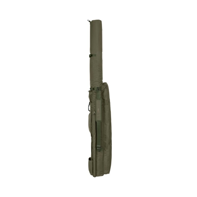 Silně polstrovaný obal na 3 pruty nabízí spoustu místa pro 3 plně vybavené pruty o délce 12 ft. Dvojitý, odolný, hlavní zip poskytuje rychlý a snadný přístup k vašim prutům a navijákům. Rozšířená vrchní část, spolu s vnitřním polstrováním, pojme bez problémů 50 mm očka, což zajistí, že vaše pruty jsou během přepravy bezpečně chráněny. Každý prut je oddělen vnitřní polstrovanou kapsou a upevněn na svém místě pomocí vnitřních popruhů. Vnitřní popruhy lze využít i k uložení vašeho spodového prutu, takže i ten může těžit z polstrované ochrany.