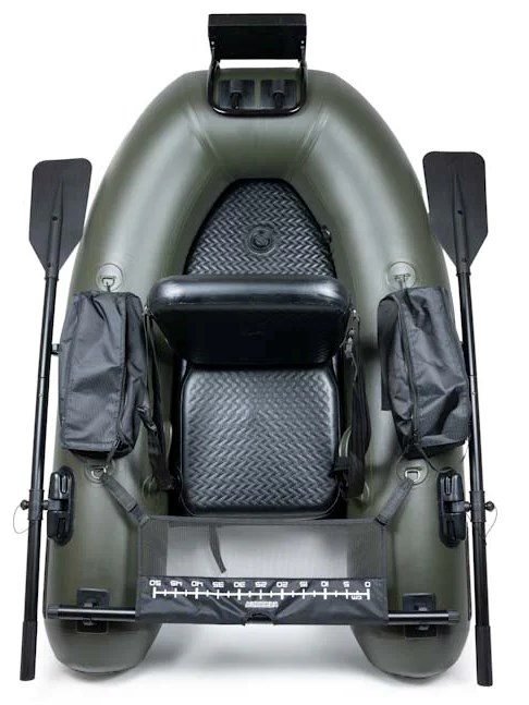 Belly boat YACCUZA Hunter Camou Green je díky své 170 cm délce, 116 cm šířce a čtyřkomorovém nafukovacím systému vysoce stabilní, pohodlný a bezpečný.