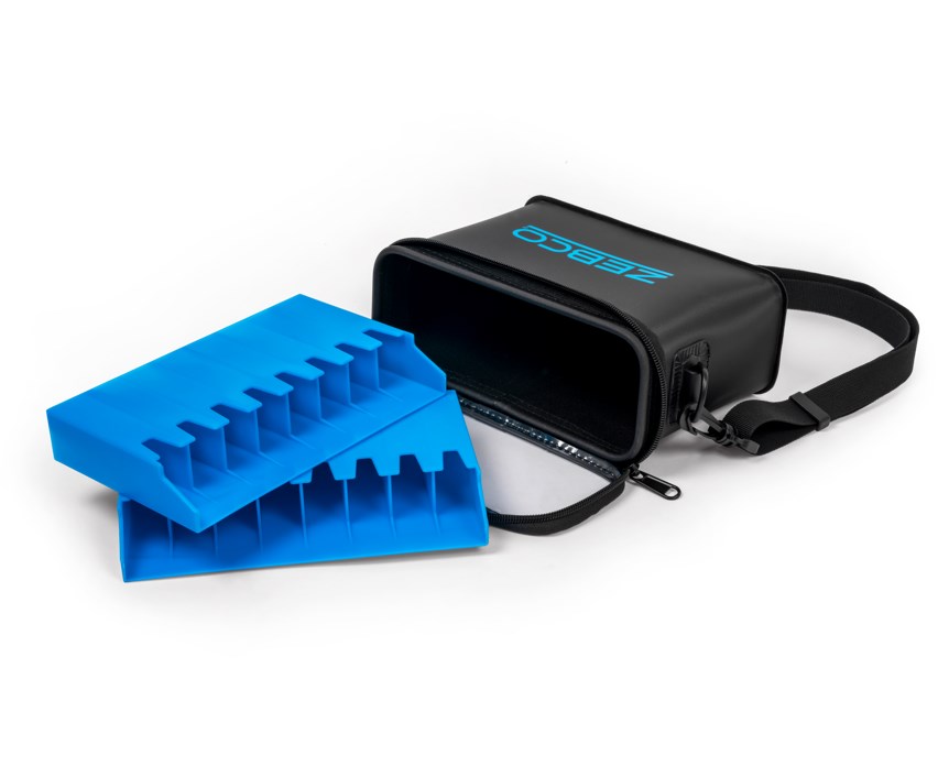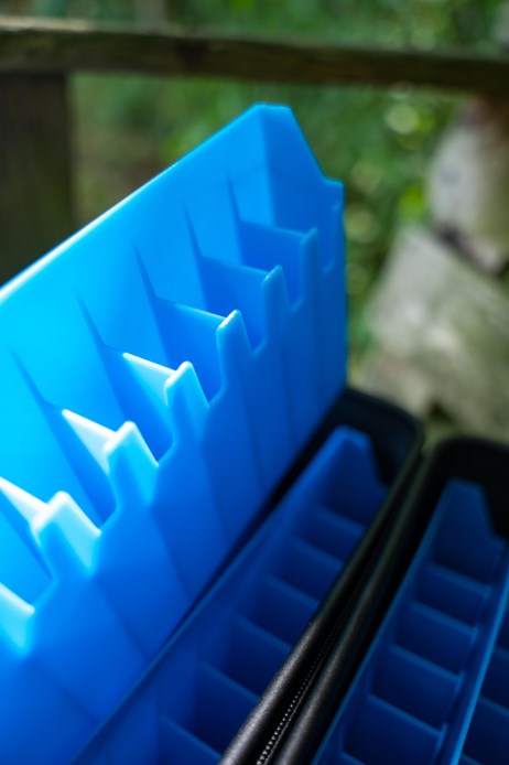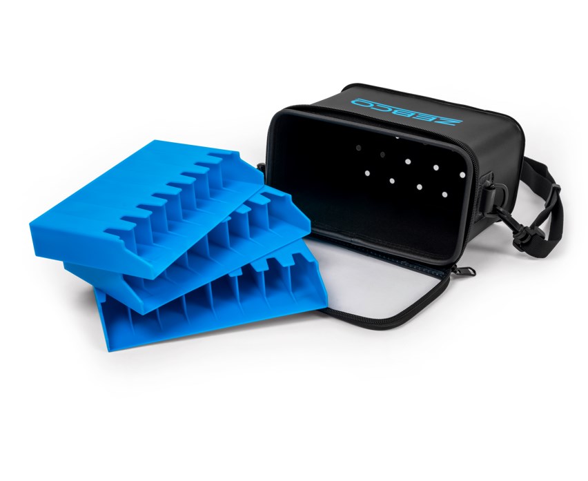 Vnější část tašky je vybavena průhledným víkem, pevným zipem a nastavitelným ramenním popruhem pro pohodlné přenášení. Uvnitř najdete 2 držáky na hardbaits s 8 sloty každý, takže můžete přehledně uspořádat až 16 nástrah.
