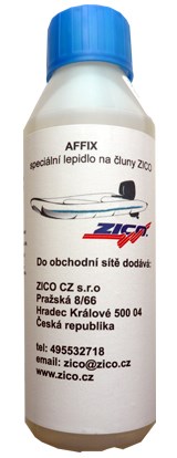 Montážní lepidlo AFFIX je speciální lepidlo na bázi polyuretanového polymeru.AFFIX. Lepidlo je určeno pro lepení nafukovacích člunů z PVC dodávaných na trh firmou ZICO pod označením BL, GL, CL a Smart.Použití: Lepidlo slouží k přilepení záplaty na poškozenou část.Poškozené místo očistíme od zbytků lepidla,odmastíme lihem nebo PVC cleanerem,zdrsníme a naneseme základní tenkou vrstvu lepidla. Stejnou vrstvu lepidla naneseme na připravenou záplatu. Obě vrstvy necháme samostatně 1-2 minuty zavadnout v závislosti na okolní teplotě.Pak obě části pevně spojíme a lepené místo zatížíme. Doba pevného spojení je závislá na okolní teplotě a spoj může být namáhán až po úplném zaschnutí za 24h. Obsah balení - 250ml.